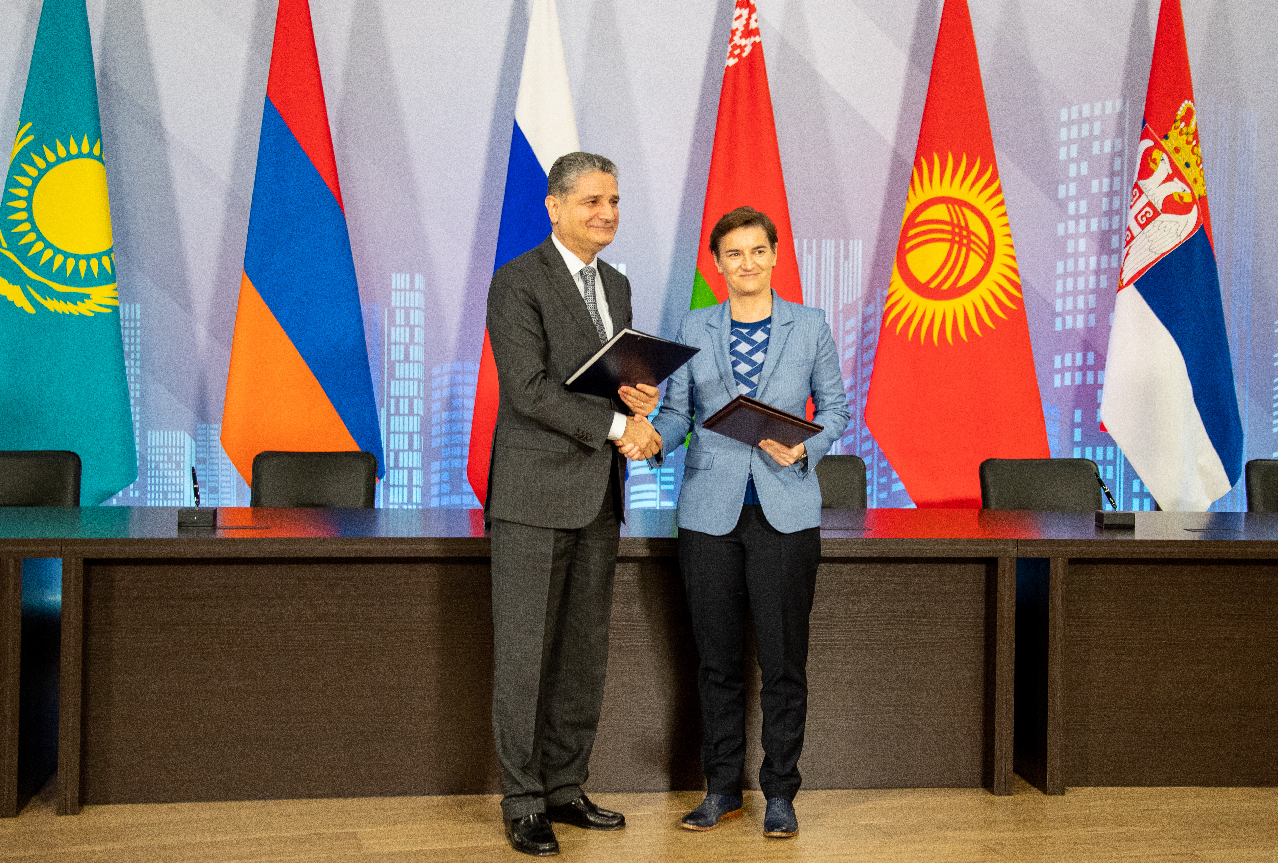 На заседании Евразийского межправительственного совета (ЕМПС) 25 октября подписано Соглашение о свободной торговле между Евразийским экономическим союзом (ЕАЭС) и Республикой Сербия. Подписи под документом поставили Председатель Коллегии Евразийской экономической комиссии (ЕЭК) Тигран Саркисян, премьер-министры стран Союза, а также Председатель Правительства Республики Сербия Ана